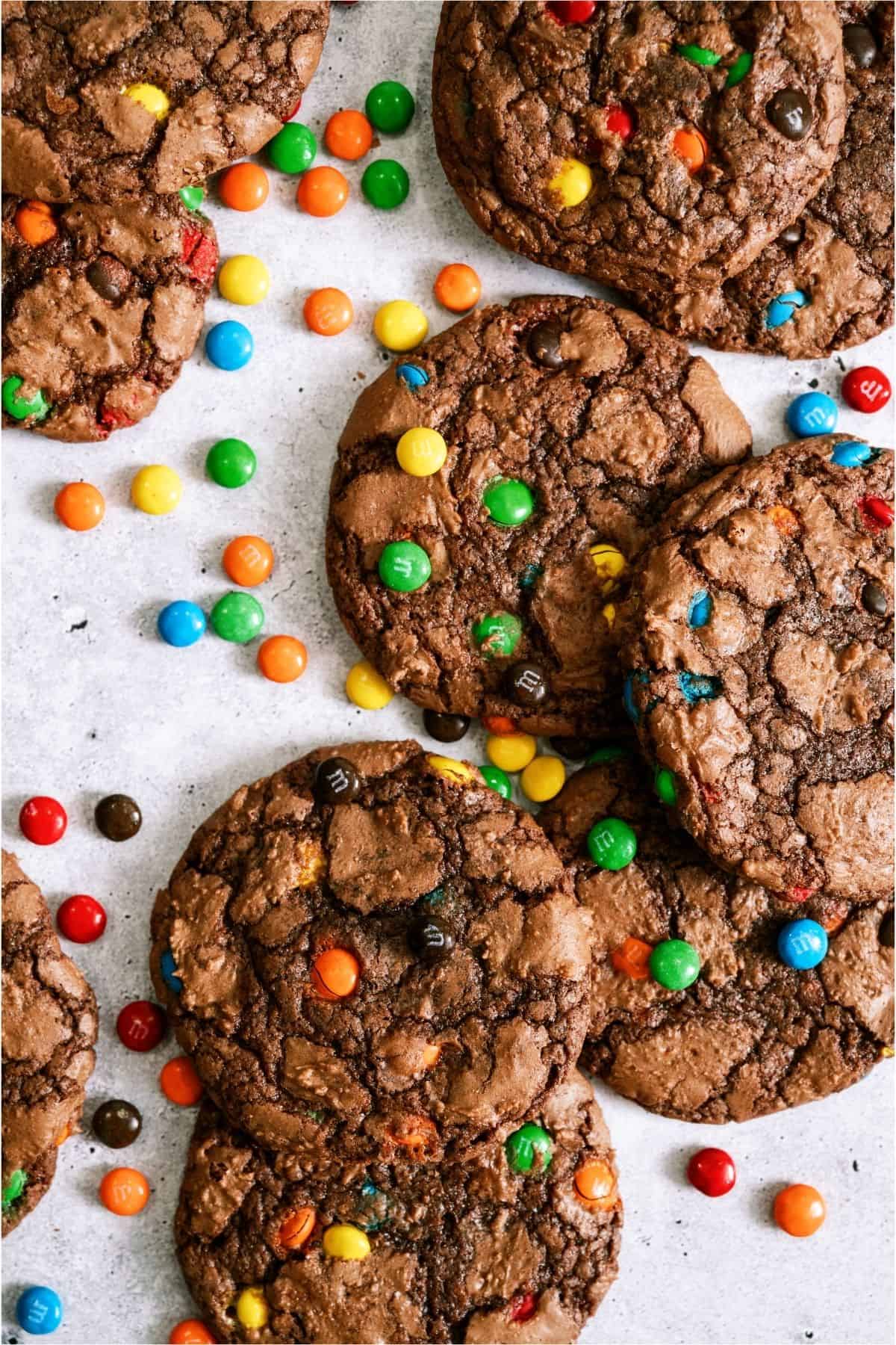 - Just like with other cookie recipes, you can add in whatever mix-ins you want and make these cookies your own. We added M&M’s to this batch.