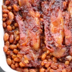 This is an excellent recipe. I did find that it was a little bit too sweet for our taste buds and next time I make it, I’m going to decreased the overall sugar. I also did not like the bacon in the large strips and I will cut it Inyo smaller pieces and lay it on the top next time. This is one of the best baked bean recipes I’ve ever made. My usual is to soak beans and start from scratch. This is much faster and has almost the same results! Thank you! I love this recipe.