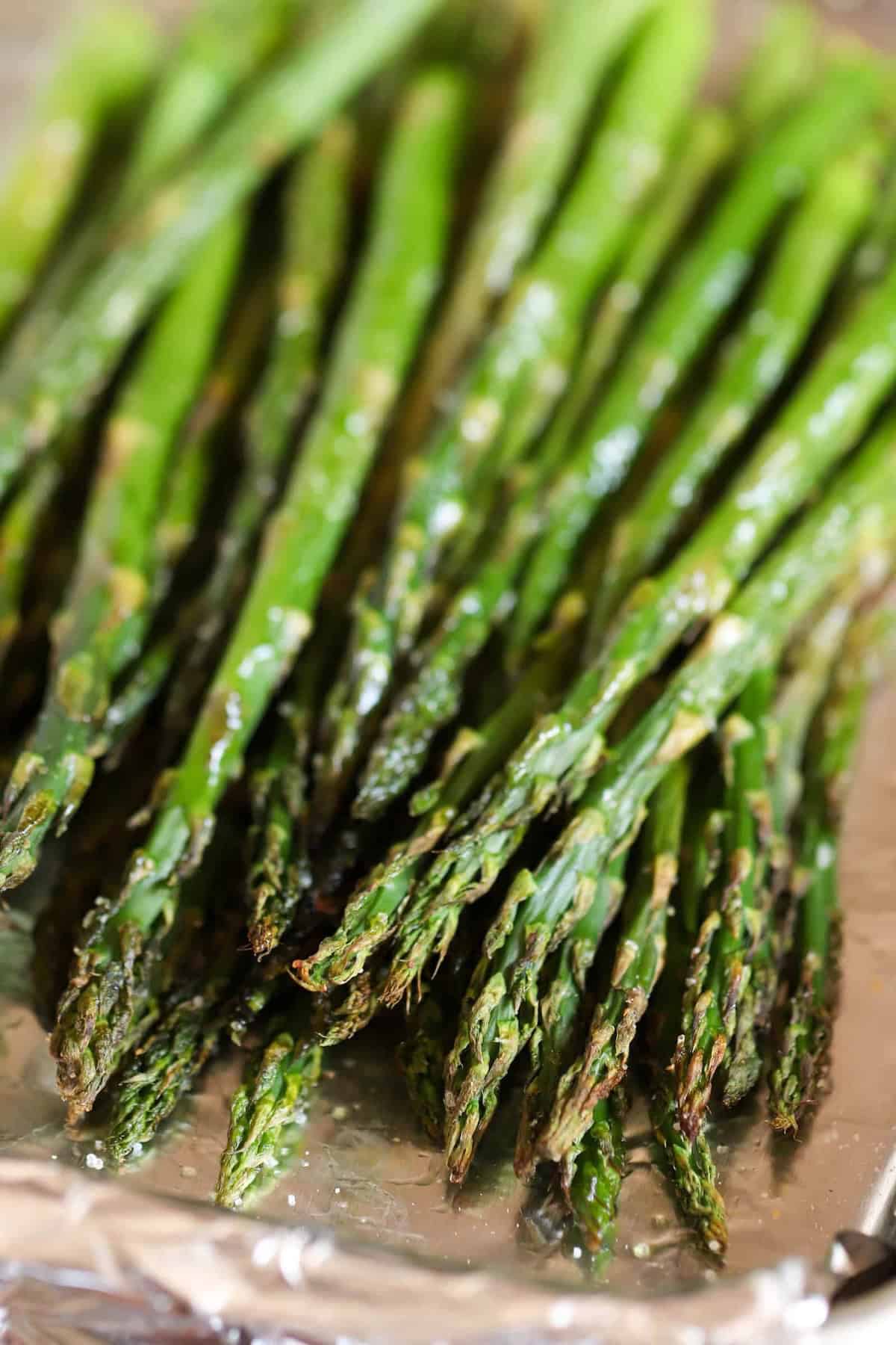 - Shake garlic salt over asparagus, then drizzle a little olive oil over top.
