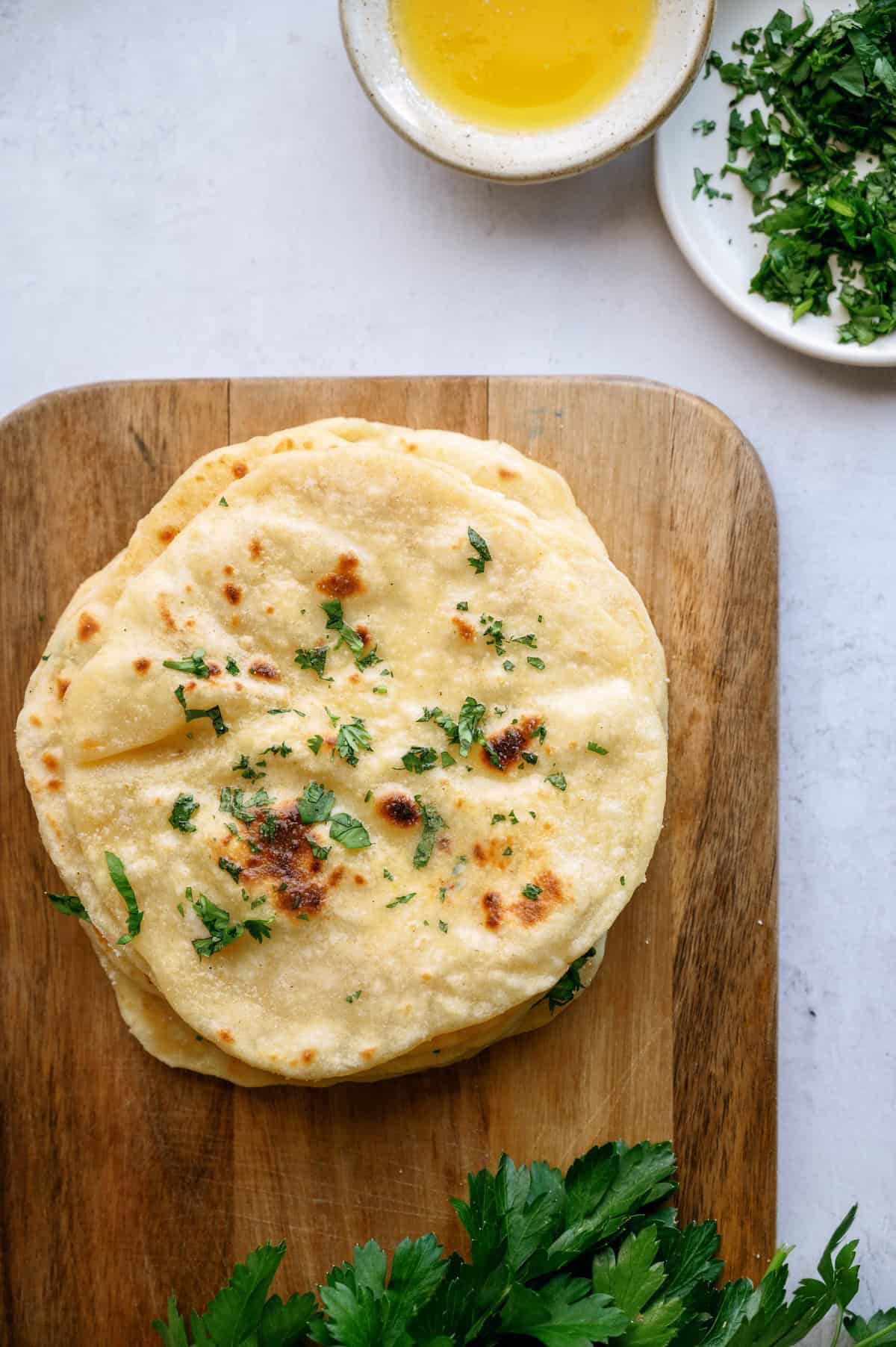 This homemade naan recipe was delicious and so easy! Can’t believe the base was just made from plain Greek yogurt and self-rising flour! Brushing the warm naan with melted butter, garlic salt, and garlic salt was a game-changer! My husband and toddlers loved it and I’ll definitely be making again. I served with ‘oven baked Greek chicken’ from Fox + Briar this time and plan to serve with Lazy Genius’s ‘chicken shawarma’ next! So good! Thanks for a great recipe.