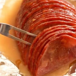 We used a spiral sliced ham, so it was sliced most of the way through. Then all those yummy flavors can soak in.