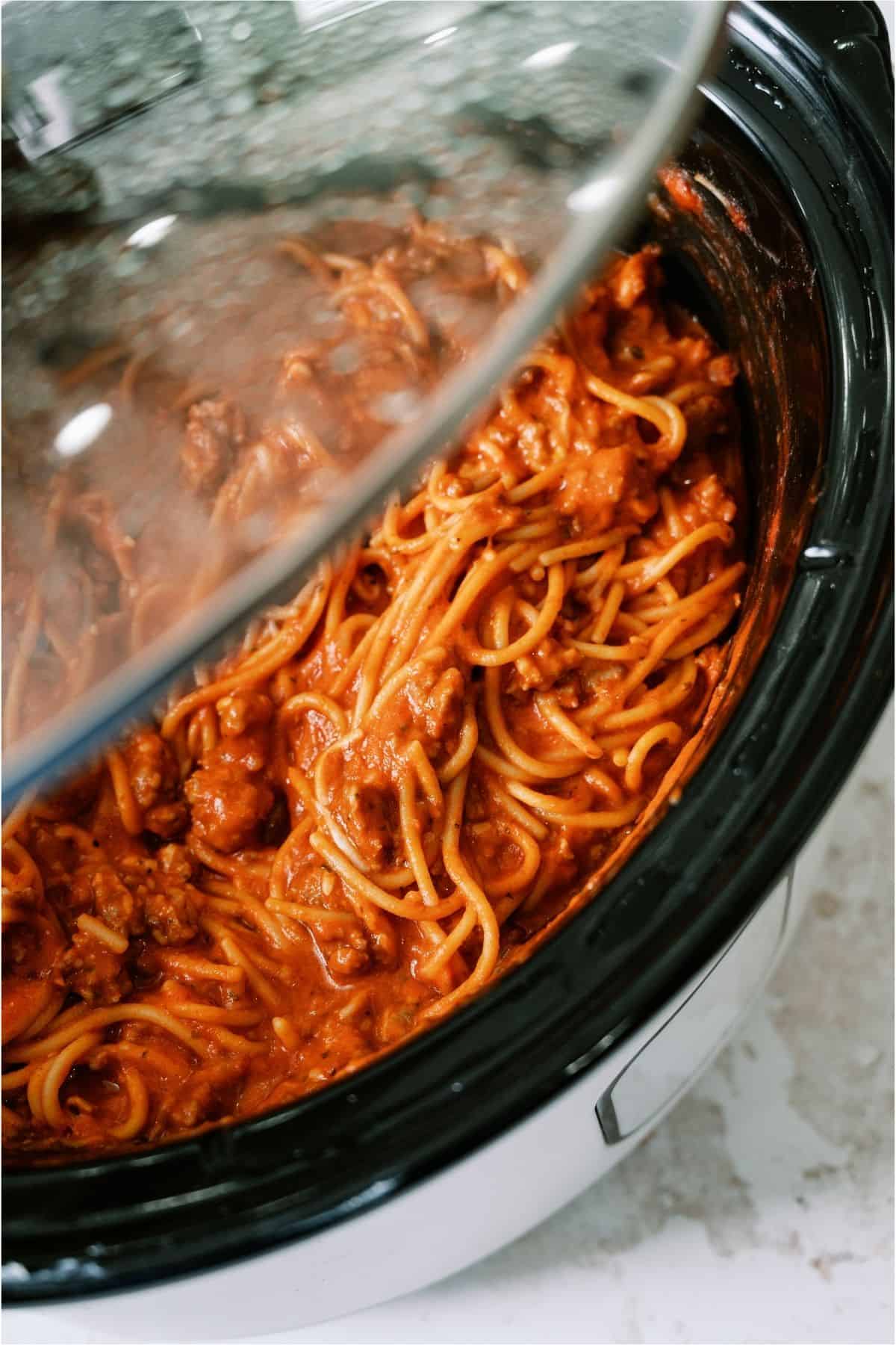 Crock pot spaghetti is a great recipe to make on busy days since the slow cooker will do most of the work. However, if you want it to keep the spaghetti warm for much longer than the cooking time, you need to make sure to watch that the pasta does not dry out or burn.