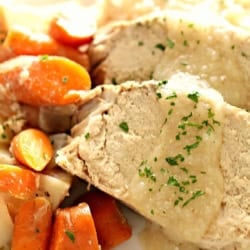 I love those recipes that include a main dish and side dish in the slow cooker, so I am happy to share this recipe with you today. It even includes the simple instructions to make a gravy with the leftover juices, which makes this recipe a keeper. It’s easy enough to throw together on a busy weeknight or delicious enough to serve for Sunday dinner.